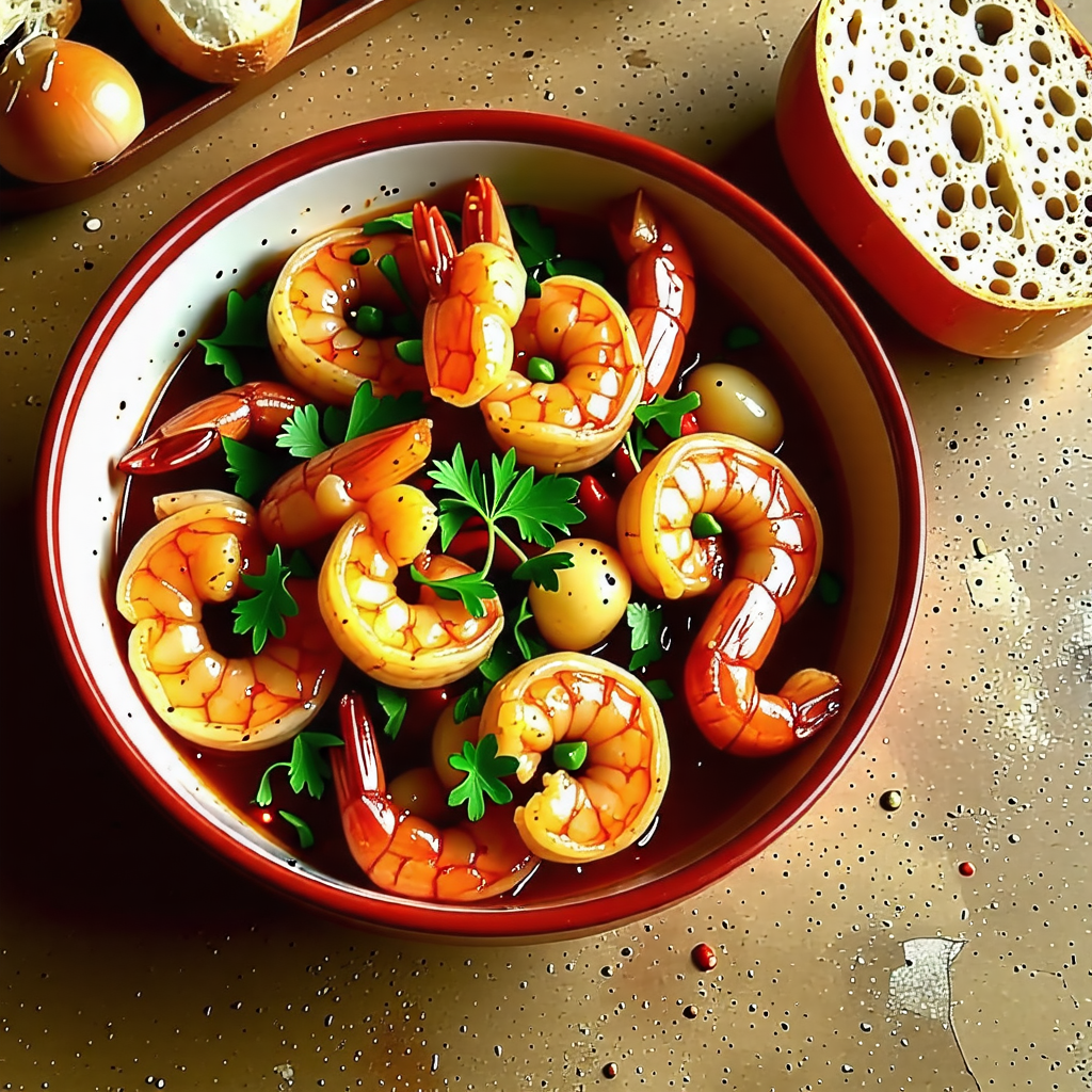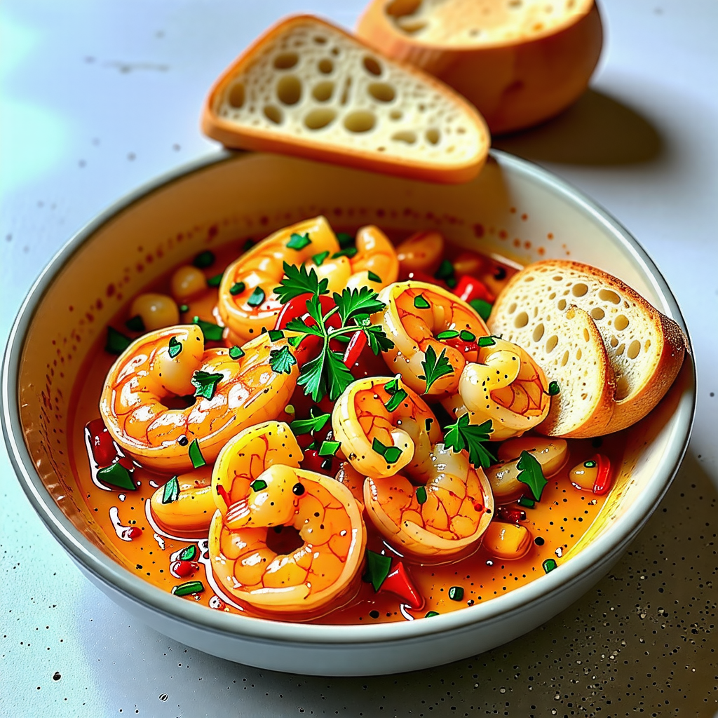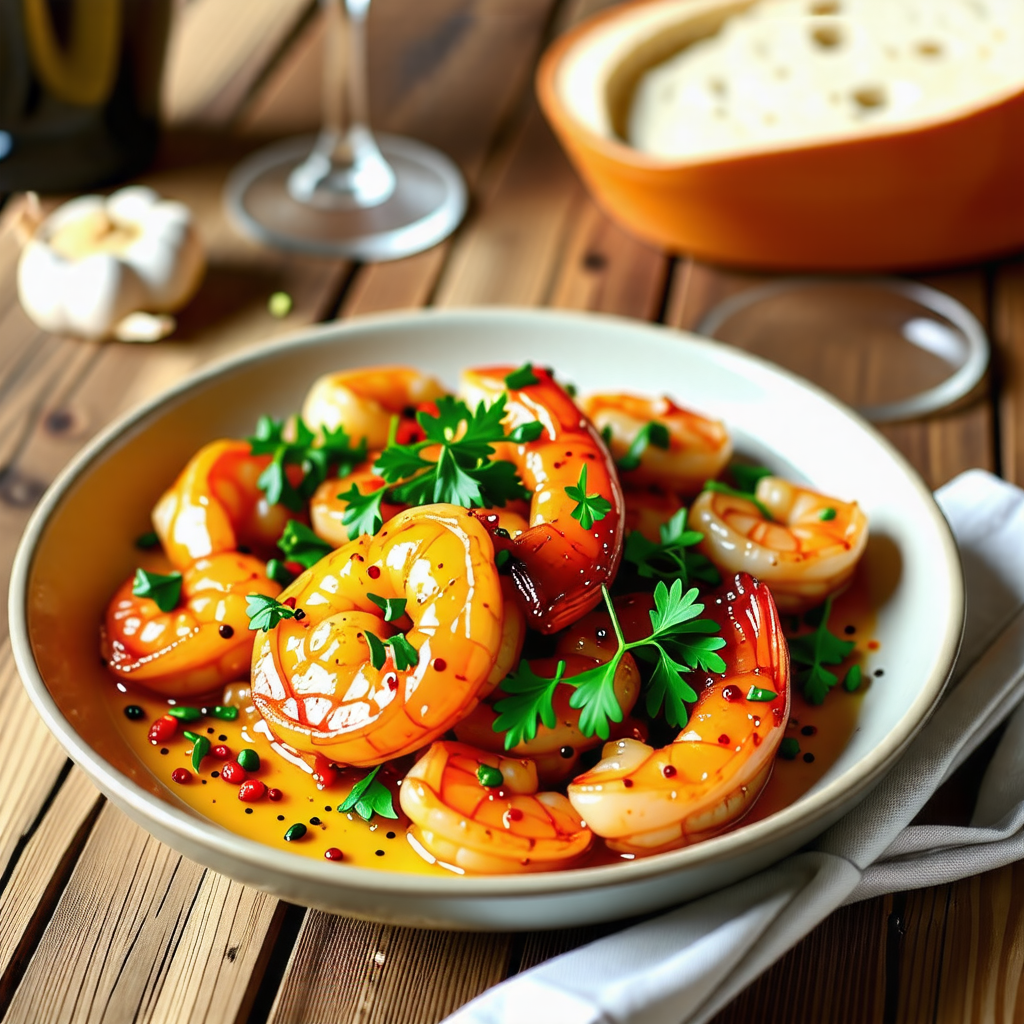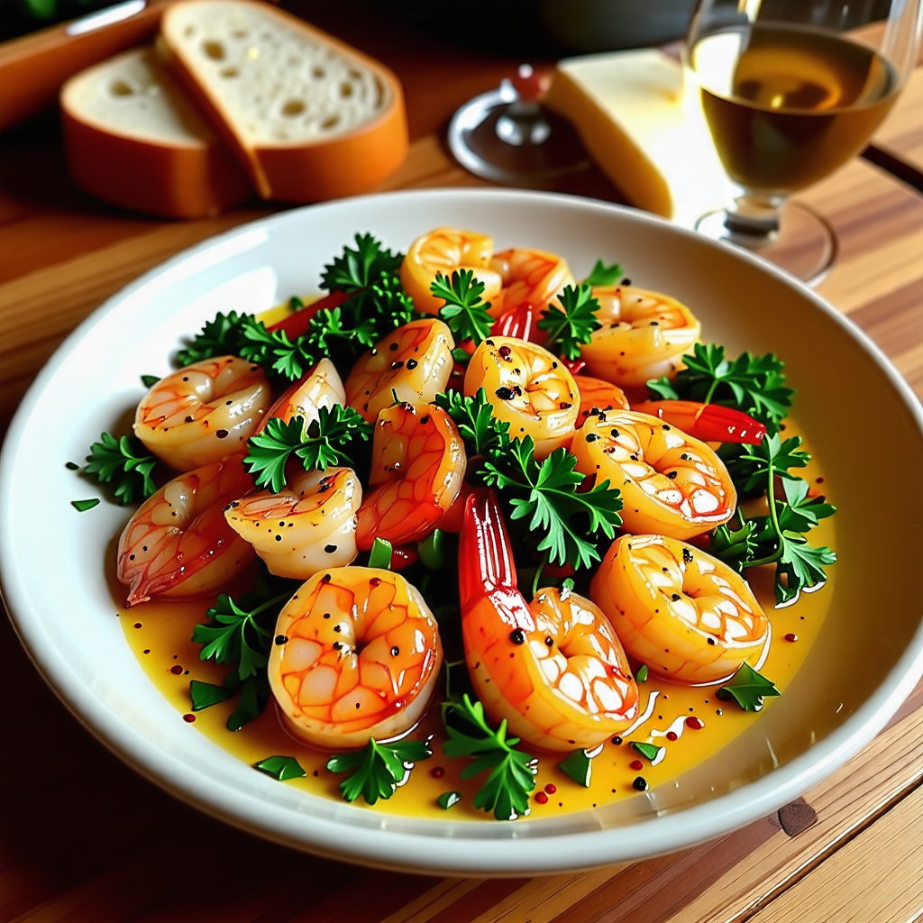 - 서빙하기 : 완성된 새우 감바스를 그릇에 담고, 원하신다면 파슬리로 장식합니다. 바게트나 크러스트 빵과 함께 서빙하면 더욱 맛있습니다.
